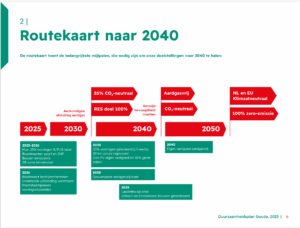 Een aardig overzicht geeft de ‘Routekaart naar 2040’ op bladzijde 6 van hoofdstuk 2. Hieronder de afbeelding op deze bladzijde: