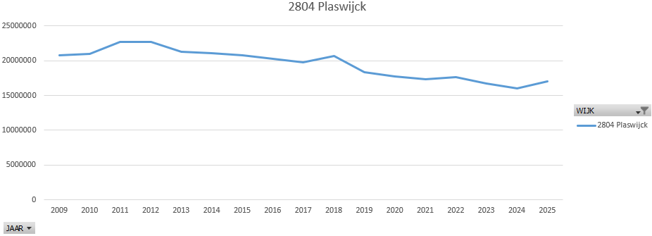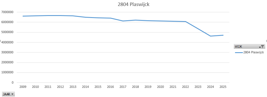 Als wijk-energiecoöperatie volgen wij jaarlijks het elektriciteits- en gasverbruik in Plaswijck (postcode 2804). Het gaat om de hele wijk: circa 5.500 woningen met ongeveer 13.000 inwoners, plus het winkelcentrum, scholen en sportgebouwen. Wij monitoren deze cijfers om te zien hoe de wijk zich ontwikkelt richting een duurzamer energiesysteem.
