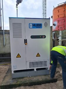 Grote batterij stroomopslag GOUDasfalt in gebruik